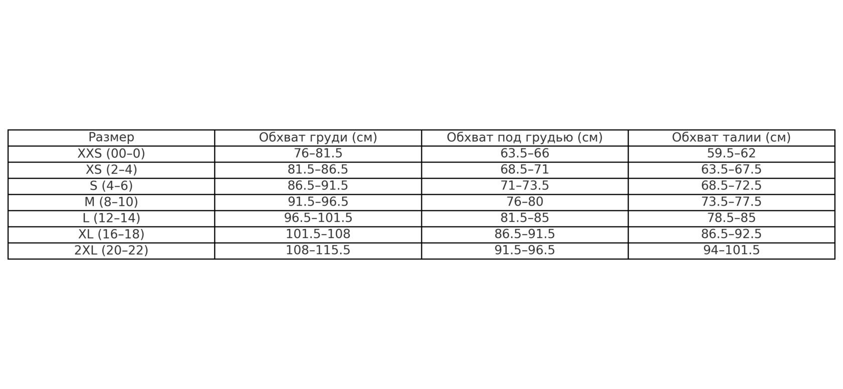 • Средняя поддержка • Прилегающий силуэт • Размер в размер